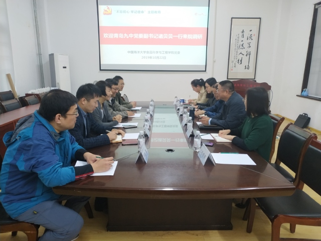 本站讯 10月22日上午,青岛第九中学党委副书记诸贝贝,副校长田山,团委书记马良,党支部书记伦业,党支部委员迟翔一行五人来访我院,就党建工作和学生教育培养与我院领导面对面交流。党委书记辛华龙,党委副书记程振明,副院长孟祥红、徐宋娟、毛相朝,团委书记李想参加了座谈。