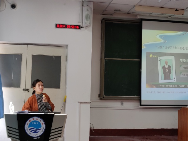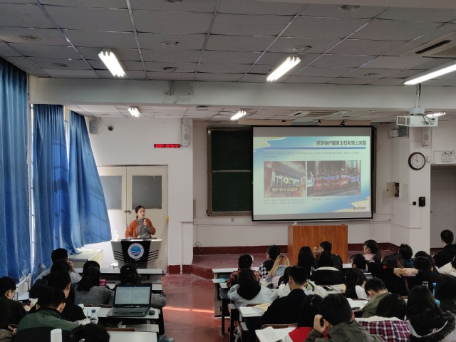 本站讯 10月26日上午,食品科学与工程学院团委副书记曹亚楠主讲的题为“祖国和平统一建设”形势与政策课在鱼山校区新教学楼顺利开讲。
