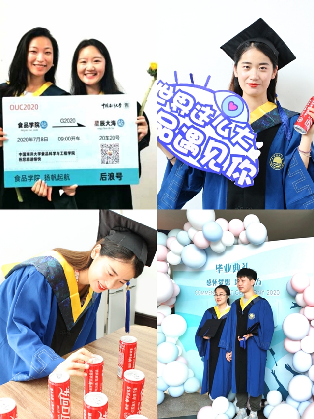 2020届毕业生经历了“同心战疫”的特别毕业季,在这场抗疫大考中,他们勇于担当、听从指挥,展现了海大食品青年挺身而出、逆行而上的担当精神。毕业季期间,食品科学与工程学院精心为2020届毕业生们筹备最后一次大学班会(组会)、订制专属毕业可乐、拍摄“我的鱼山时光”毕业合影、展播毕业生“高光时刻”,通过系列活动让毕业生们感受到学校、学院的祝福与期许,激励学院2020届毕业生以青春的奋斗姿态,仰望星空,脚踏实地,在实现中国梦的伟大征程中建功立业。