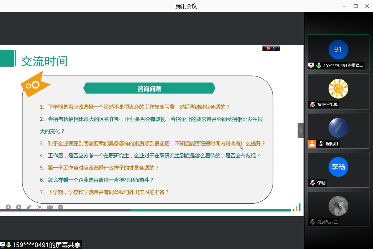 本站讯 为进一步增加校友在学生职业规划和就业指导工作上的参与度,壮大学生职业规划教育队伍,增强学院就业指导能力,促进学院就业指导工作的顺利开展。2021年1月25日,食品科学与工程学院“职得你听之校友面对面” 求职经验线上指导课于线上举办。