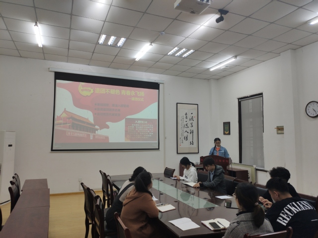 本站讯 为进一步推进全面从严治团,加强仪式教育,2021年4月22日,食品科学与工程学院在六二楼104会议室举办“青春正当时,离团不离心”——2021年超龄团员离团仪式,学院辅导员吴佩伦、博士年级团支部支委、团员和超龄团员代表参加活动,2017-2019级博士班团支部书记梁梦琦主持仪式。