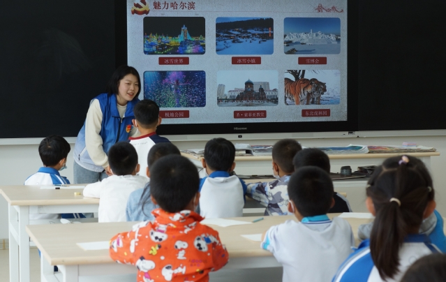 主讲人郑砚文首先从“中国最北端”这一地理位置引出黑龙江省,通过引人入胜的图片与视频展示了哈尔滨的冰雪文化、特色美食、风土人情等,引发同学们对黑龙江的浓厚兴趣。随后,主讲人任静通过问答互动形式引出哈尔滨的红色历史。以“七三一部队”遗址为主讲背景,利用大量珍贵的文物图片,深入浅出地为同学们讲述了日本帝国主义的反人类暴行以及抗日英雄的英勇事迹。同学们积极思考,热情互动,在与宣讲团的问答交流中收获知识,开拓眼界。