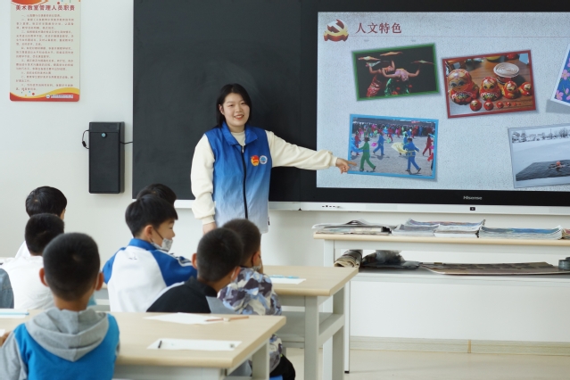 图4.志愿者为学生介绍黑龙江的红色故事