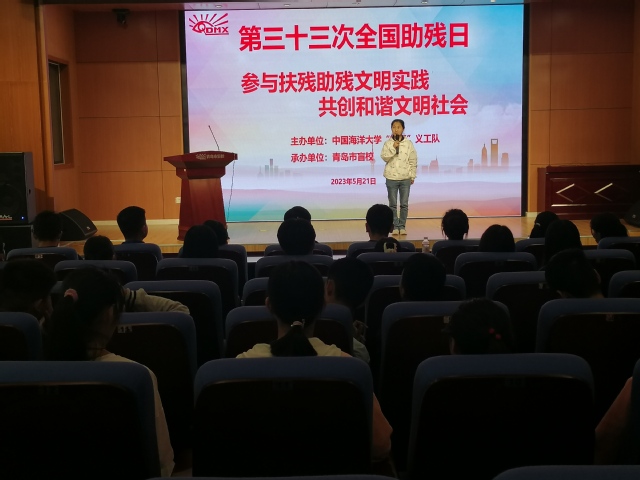 2023年5月21日是第三十三次全国助残日,为关爱残疾群体,倡导扶残助残的良好风尚,中国海洋大学“勉行”义工队组织“食代先锋”科普宣讲团志愿者赴青岛市盲校开展“换位体验,结对同行”实践活动,共有12对盲校学生和志愿者参与了此次活动。