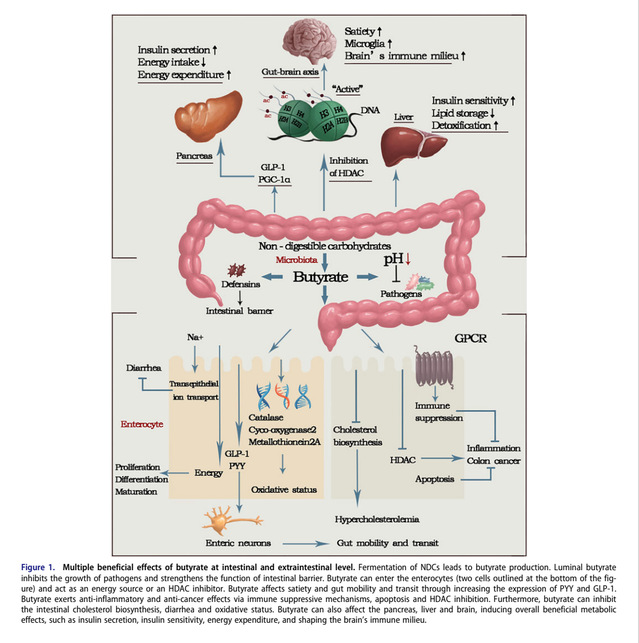 不可消化碳水化合物(NDCs)是结肠中的发酵底物,在上消化道中逃脱消化。丁酸盐是胃肠道微生物发酵产生的最重要的代谢产物之一,直接影响结肠细胞的生长和分化,是结肠细胞的主要能量来源。此外,丁酸盐具有多种生理作用,包括增强肠道屏障功能和粘膜免疫。本文介绍了几种具有代表性的NDCs,并讨论了它们的化学成分、结构和生理功能,包括促进丁酸生产菌的增殖和提高丁酸生产。我们还描述了基于内源性生成机制实现结肠丁酸盐定向积累的策略。