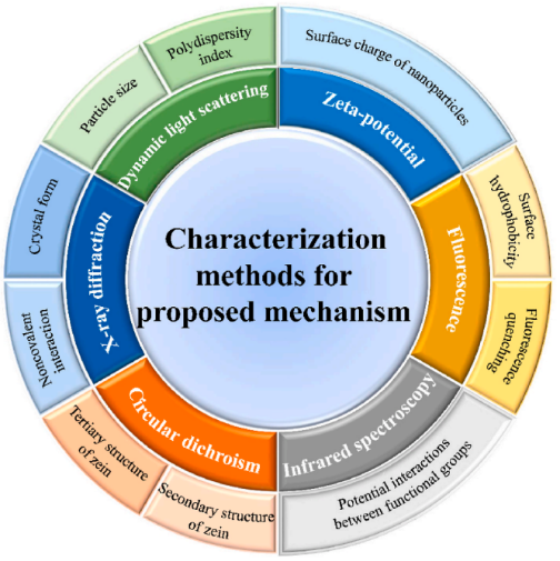 Fig. 2. Characterization methods for the proposed mechanism of the formation of surface-coated zein nanoparticles.