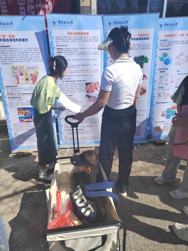 本站讯 为进一步贯彻国务院提出的健康中国战略,落实国卫办《全民健康素养提升三年行动方案(2024-2027年)》,9月6日,中国海洋大学食品科学与工程学院“朝夕益食”——健康中国科普实践团赴泊里大集开展“食育文化进大集”路演活动,向周边居民宣传食品安全与营养相关知识,引导其树立良好的食品安全意识。