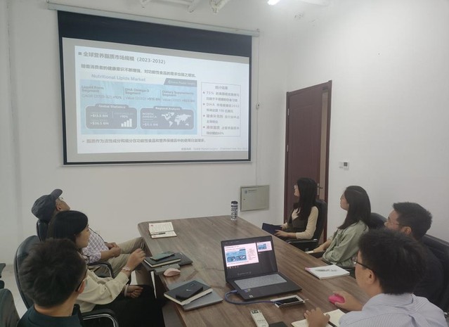 2024年9月25日,食品科学与工程学院2024年第四期学术沙龙在食工楼459会议室举行。本期学术沙龙邀请了学院张海洋副教授作了题为“海洋脂质资源生物转化关键技术与应用”的精彩报告。学院学术委员会汪东风教授及青年教师10余人参加本期学术沙龙。