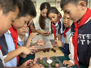 山东省食品科学技术学会秘书长任子钰与中国海洋大学“勉行”义工队共同带领小学生开展月饼制作活动。志愿者们首先为同学们讲解中秋节日的起源、“祭月和赏月”民俗以及月饼象征团圆的文化内涵,帮助大家深入理解传统美食背后丰富的文化意蕴。随后,义工队成员细致演示月饼制作的全流程:从饼皮揉制、馅料包裹,到模具压制,每个步骤都耐心指导、一一拆解。在学生动手实践过程中,志愿者穿梭于操作台之间,随时提供细致协助。同学们不仅掌握了传统月饼的制作技艺,更在劳动中体会到团队协作的价值,增强了对传统文化的认同感与传承使命感。