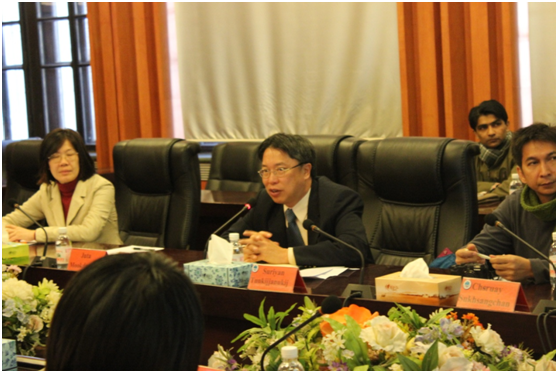 2014年12月5日上午,泰国农业大学水产学院院长SuriyanTunkijjanukij教授带领该院5位教师及泰国农业部水产部门2名官员来访中国海洋大学食品科学与工程学院,双方在鱼山校区胜利楼一楼会议厅举办了“中-泰”国际合作项目-“海参养殖与加工技术”研讨会。食品科学与工程学院院长薛长湖教授、副院长牟海津教授、王富龙主任、梁兴国教授、张朝辉教授、院外事办主任唐庆娟副教授、赵雪副教授、董士远副教授,水产学院曾晓起教授,泰国留学生Miss Jitima Suwanmala和学生代表武娟、张琪、路上云、刘芳、石红杰等出席了本次研讨会。