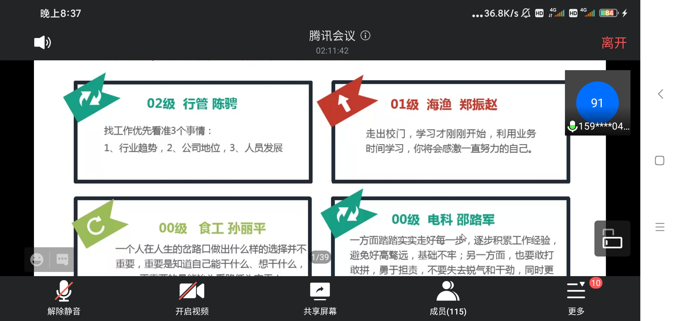 最终,黄成兰通过“现在的你,想对当年大四将要毕业的自己说些什么?”这一话题,向大家展示了已在社会奋斗多年的校友们的丰富经验和宝贵建议,“敢打敢拼,勇于拼搏”、“抬头看路,低头实干”、“严于律己,用心做事”,校友们用深情且朴实的话语鼓励同学们树立终身学习的习惯和大胆尝试、勇于拼搏的精神。黄成兰结合自己毕业后丰富的社会工作经验和职业探索,鼓励同学们要保持自信、拓宽视野、不断学习、努力成长,成长为自己想成为的样子。
