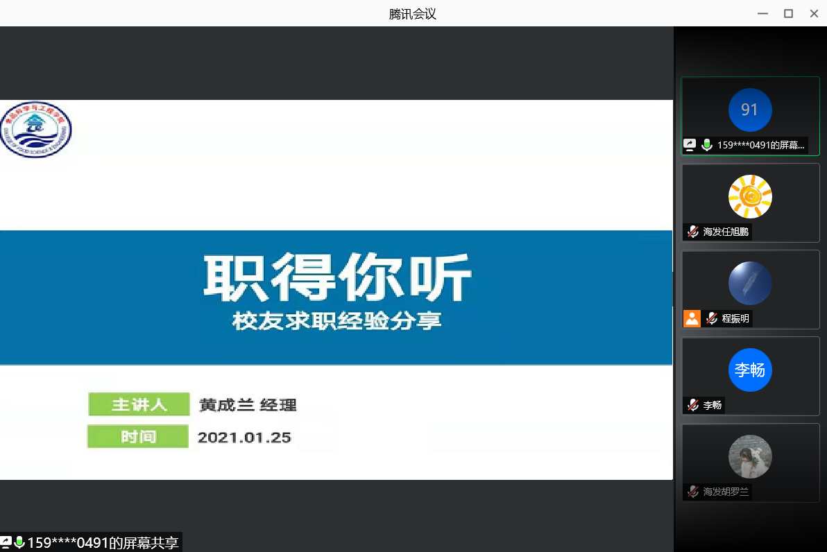 本站讯 为进一步增加校友在学生职业规划和就业指导工作上的参与度,壮大学生职业规划教育队伍,增强学院就业指导能力,促进学院就业指导工作的顺利开展。2021年1月25日,食品科学与工程学院“职得你听之校友面对面” 求职经验线上指导课于线上举办。