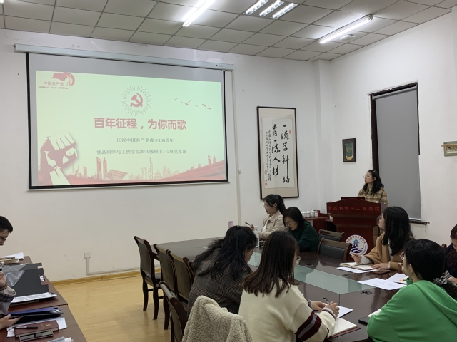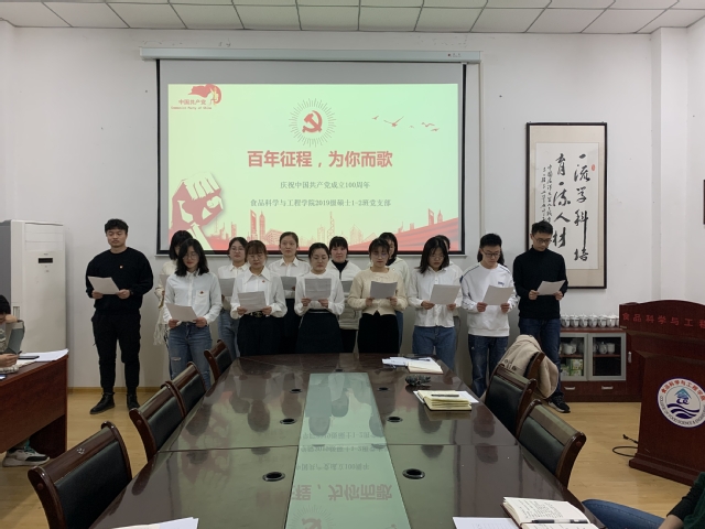 为追寻民族峥嵘岁月,献礼建党100周年,3月22日晚,2019级食品科学与工程硕士研究生党支部开展“百年征程,为你而歌”主题党日活动,学院党委副书记程振明,支部全体党员及入党积极分子参加此次互动。