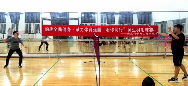 本站讯 站在新时代的历史坐标上,体育强国梦和中国梦息息相关。从“体育大国”到“体育强国”,虽只有一字之差,却是综合国力提升和社会文明程度提升的重要体现。习近平总书记多次强调,体育是社会发展和人类进步的重要标志,是综合国力和国家软实力的重要体现。10月11日,在食品科学与工程学院党委指导下,由学院工会和团委联合主办,学院研究生会承办的“响应全民健身 献力体育强国”系列活动之“羽”你同行师生羽毛球赛在鱼山校区排球馆顺利开展举行。