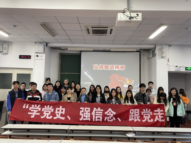 2021年11月7日,由学院副院长、党委委员徐宋娟主讲的《弘扬奥运精神》主题党课在新教楼201室顺利开课,学院2020级专硕2班党支部全体党员及入党积极分子参加了此次学习。徐宋娟从奥运会相关知识点入手,追溯了奥林匹克运动会发展史,奥运五环、奥火炬的出现及升级改造史,带领同学们进入了奥林匹克运动的世界。向同学们发出呼吁:从体育大国迈向体育强国,需要你我的共同参与。每位中国人都应该争当全民健身运动的践行者,争当科学健身的引领者,积极投身到全民健身热潮中去,为健康中国、体育强国贡献青春力量。