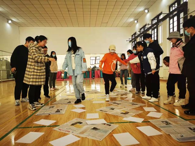 进入正式游戏环节,同学们被分为五个小组进行游戏比拼。“巧过地雷阵”拉开比赛序幕,一人蒙眼行走,其他同学们进行指挥,有人上手掰腿、有人挪动地雷,班主任也参与其中。游戏充分考验了组员间的相互信任、培养了表达能力与倾听技巧。“当把说和听单独拿出来时,我们才会理解感同身受的含义,在今后与人沟通交流的过程中,我也会更加注意语言的表达”,张雨婷同学在游戏后继续了分享。