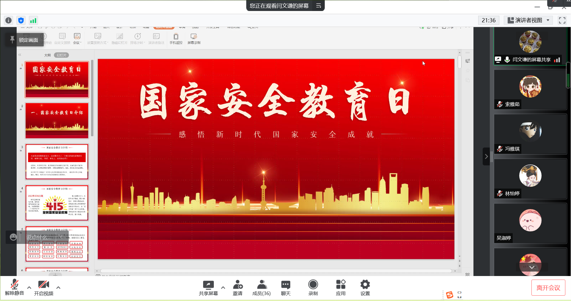 最后,张川老师对本次班会、团会进行了总结和点评。张川首先对班级近期工作表示肯定并对班级的工作规划和未来发展进行指导和建议。随后,他指出,国家安全与每个人息息相关,当前世界并不和平,是伟大的国家让我们生活在一个和平环节下,同学们要重视国家和民族尊严,增强民族自豪感,把爱国之心转变成报国之行。同时,2022年是建团一百周年,各位青年团员要在奋斗中坚定理想信念,不负青春、砥砺前行。