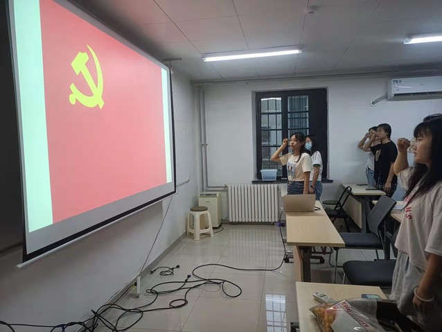 会议伊始,由党支部书记郑婷同志带领全体党员重温入党誓词,大家共同举起右拳,面对鲜红的党旗庄严宣誓。入党誓词的重温进一步增强了全体党员的党性修养,表达了每位党员同志对党的的责任与承诺,更加坚定了作为新时代青年党员勇担重任、砥砺奋进的理想信念。