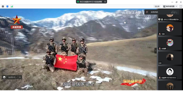 本站讯   为加强新时代大学生国防教育观念,增强爱国爱党爱社会的深厚情感,10月23日晚,2019级食品科学与工程2班召开线上团会,主题为“加强新时代国防教育”,团组织委员王宇辰主持会议。