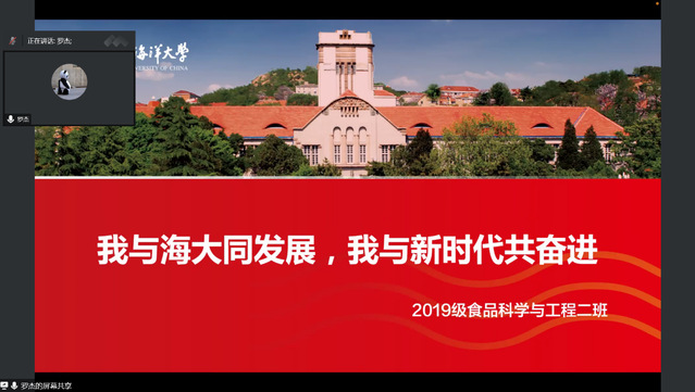 在团会结束之后,2019级食工2班又在班长罗杰主持下,进行了“我与海大同发展,我与时代共奋进”主题班会。同学们共同浏览了西海岸全景航拍图,学习中国海洋大学校史,对于增强爱校情怀、增进时代责任感有着重要意义。