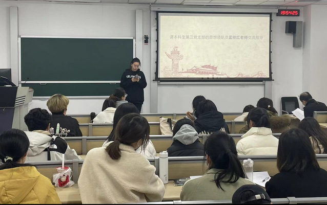 随后,党支部思想领航员孟祥红针对“中国特色”、“创新实践”、“未来就业”等内容发表讲话。孟祥红强调,青年是国家的未来和民族的希望,希望青年党员肩负时代责任,将实现个人价值的目标与时代奋进的目标相结合,高扬理想风帆,发挥专业优势,开发海洋,探索海洋,做有理想的大学生。