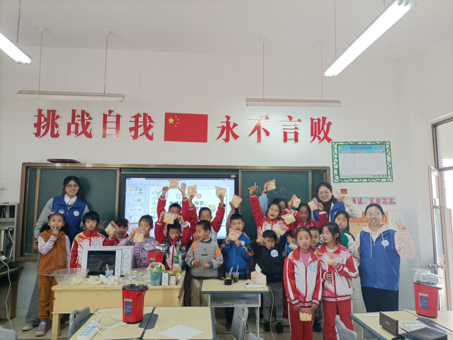 本站讯 为贯彻落实大学生社会实践计划,助力海洋食品通识教育下沉,4月8日,中国海洋大学食品科学与工程学院研究生会成长部联合中国海洋大学“勉行”义工队与半岛都市报社、青岛不二塾公益助学组织一同前往临沂市沂水县泉庄镇中心小学,为青岛市与沂水县两地联谊的小朋友们带来了生动有趣的食品创新实践互动课堂,百余名学生及家长参与了此次活动,共同学习食品知识,感受实践乐趣。