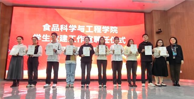 本站讯 为充分发挥优秀教工党员的教育引领作用,提升学生党员的先进性和纯洁性,12月14日下午,学院党委举办学生党支部“信仰领航员”、党建工作室成员聘任仪式。食品科学与工程学院党委书记于德华,党委副书记、副院长程振明,各学生党支部“信仰领航员”出席活动。学院党委专职组织员曹亚楠主持聘任仪式。