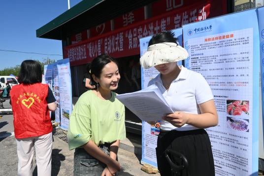 本站讯 为进一步贯彻国务院提出的健康中国战略,落实国卫办《全民健康素养提升三年行动方案(2024-2027年)》,9月6日,中国海洋大学食品科学与工程学院“朝夕益食”——健康中国科普实践团赴泊里大集开展“食育文化进大集”路演活动,向周边居民宣传食品安全与营养相关知识,引导其树立良好的食品安全意识。