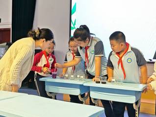 “食品添加剂真的都有害吗?”“紫甘蓝汁为何能辨别溶液酸碱?”在讲座现场,中国海洋大学安然老师以“食品添加剂的科学认知”为切入点,结合日常饮食实例,有力破解了“添加剂即有害”的认知误区。她通过解读食品添加剂相关法规与安全数据,引导学生理解合规使用食品添加剂对保障食品安全的重要作用,在潜移默化中培养学生尊重科学、理性看待食品成分的意识。随后,安然老师现场演示“紫甘蓝变色实验”,并邀请40名学生分批上台实操。“原来科学就在我们身边,小小的紫甘蓝竟能当‘检测员’!”刚完成实验的学生王梓涵兴奋地与组员分享成果,现场互动气氛热烈。